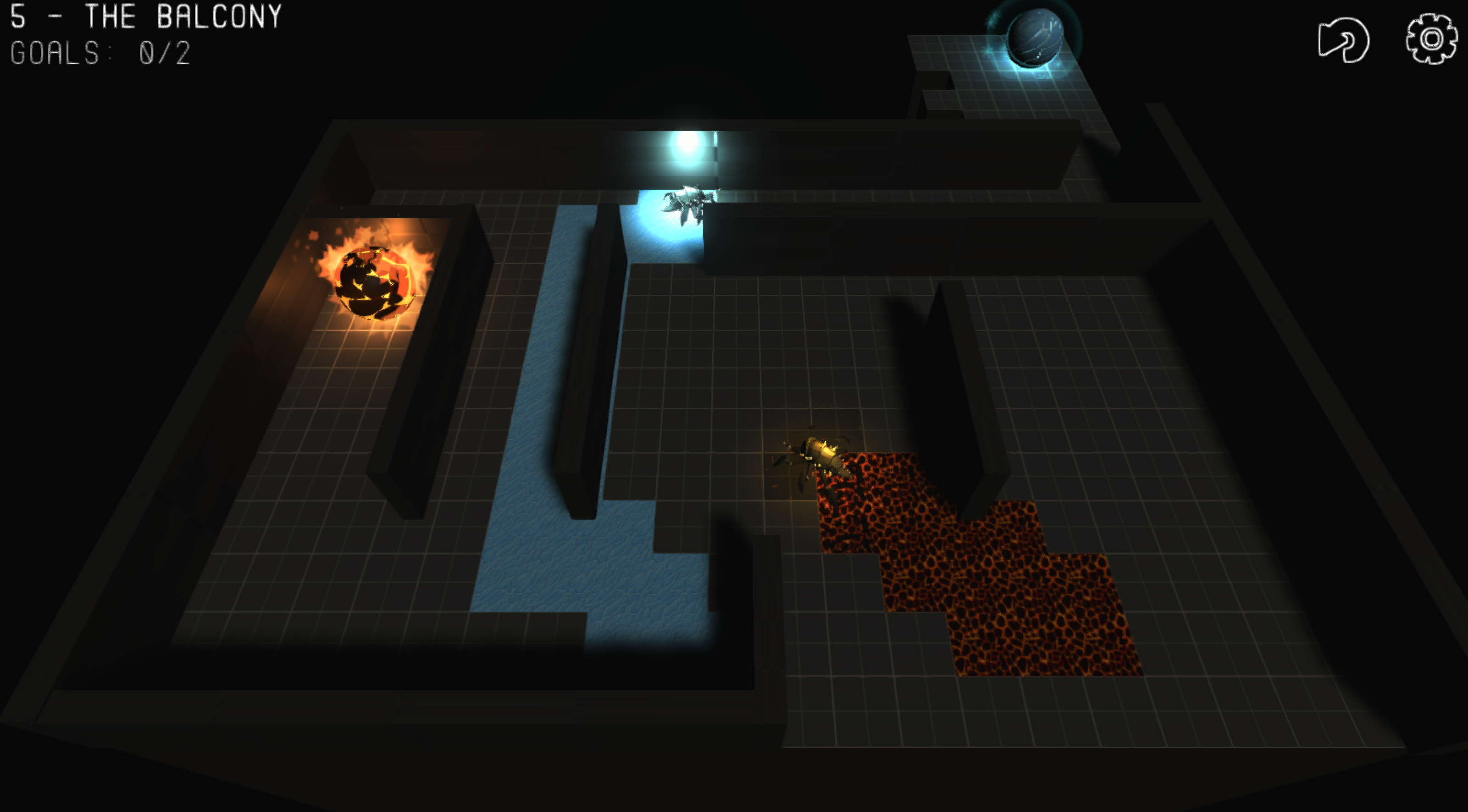 Antypoda is a puzzle game developed during the 2022’s Global Game Jam, in which the player must control elemental beetles to reach their goals without crossing each other’s paths through all 15 levels. The game was developed over a period of 48 hours.