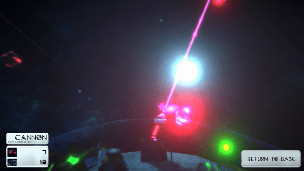 Moon Gun was developed following the Game Jam’s theme: Moonshot. In Moon Gun, you have to manage the base of S/2009S1 during a Phlebotium extraction operation. Due to its dangerous position in Saturn’s asteroid belt, the moon base is continuously at risk of being hit by asteroids. Use the Turret, your only offensive mechanism, to destroy the asteroids and protect the facilities. But fear not! In the operation’s early stages, the protective shield covering the base is strong enough to hold up for as many asteroids as you might let slip away. However, as the extraction intensifies, worse and more menacing dangers will arise!
