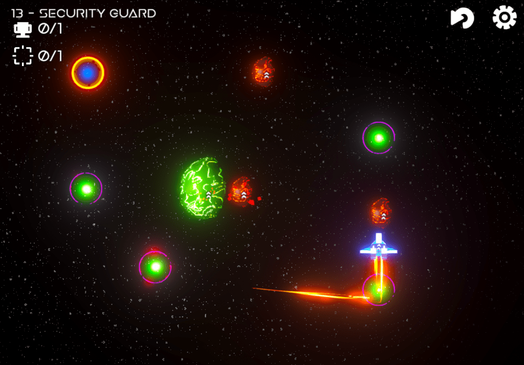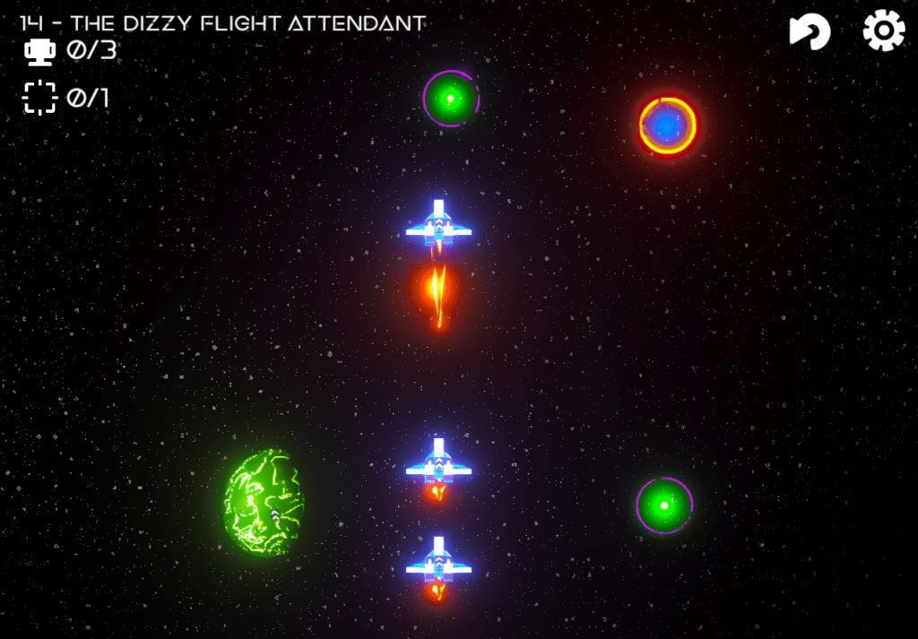 Most of the game’s assets are planes and spheres using Unity’s Shader Graph. The Space Ship used is a free asset from Kenney.nl, part of the Space Kit package. The starry background is the same used in the Endure game, with only a few parameters changes to be suit Safe Travels’ style.