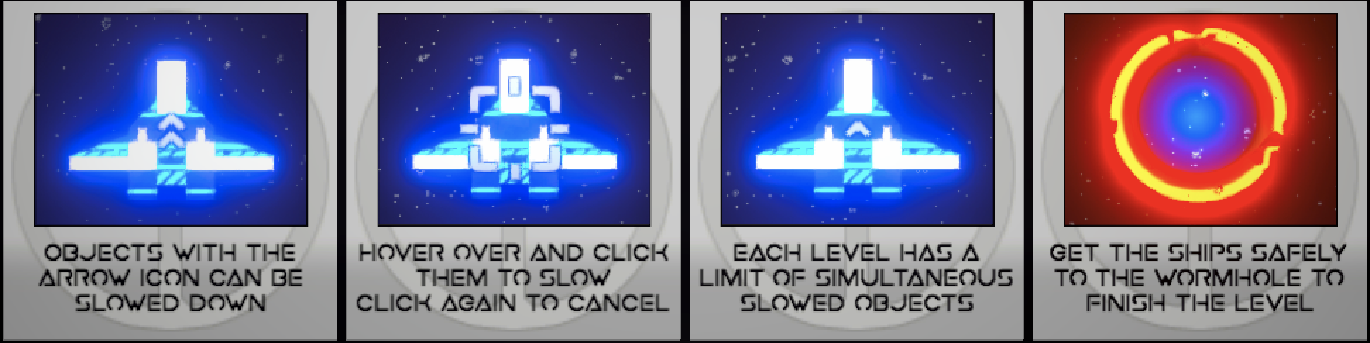 Safe Travels was developed during the LiNK CMGT Jam, in which the theme was: Slow. Safe Travels is a puzzle game in which the player can slow objects down to ensure the safe passage of space ships until they reach the wormhole to their destination.