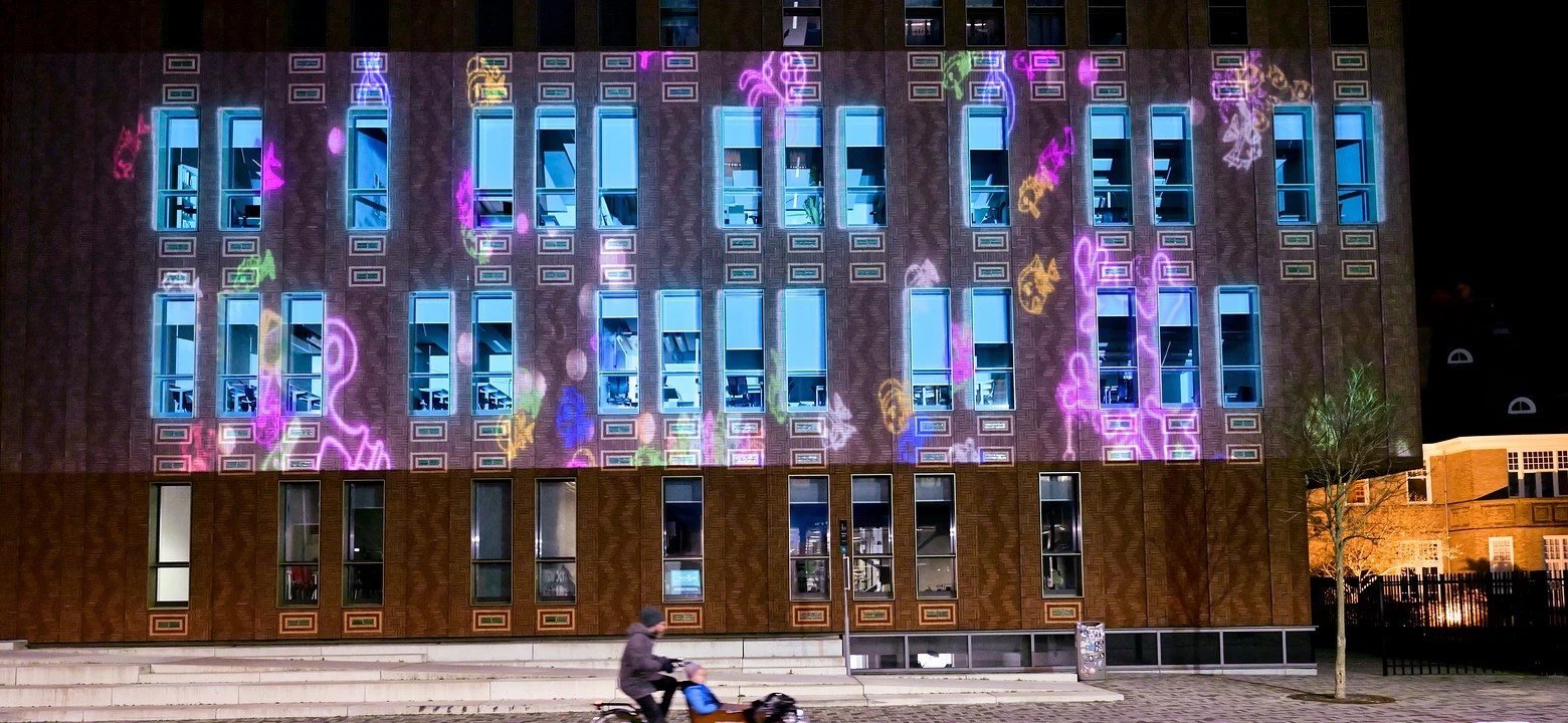 Fishy Fish McFish was an interactive light installation specially made for Enschede Lights Up 2022. It was developed as a collaboration between teachers and students from the Creative Media & Game Technologies (CMGT) program at Saxion University of Applied Sciences in Enschede, The Netherlands.